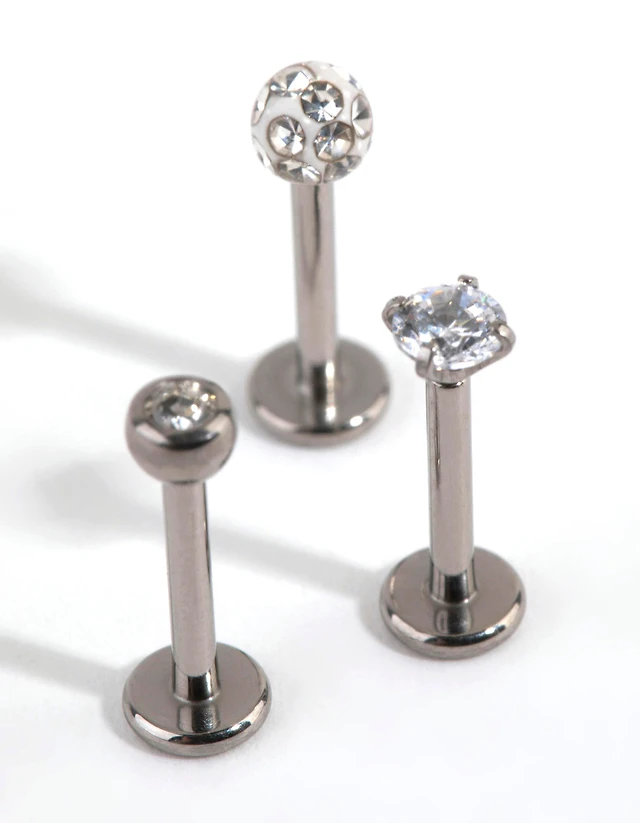 Gold Plated Surgical Steel Cubic Zirconia Butterfly Flat Back 3-Pack