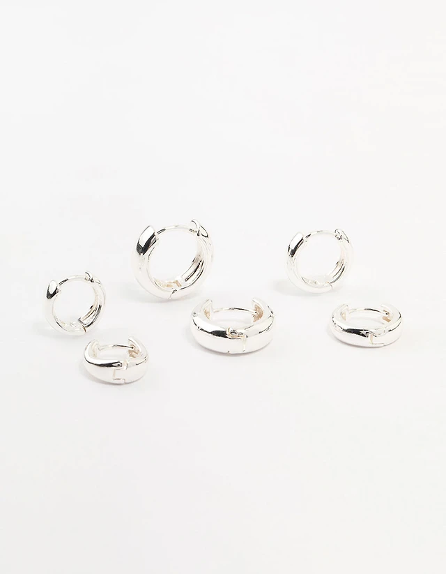 Gold Plated Brass Graduating Taper Hoop Earrings 3-Pack