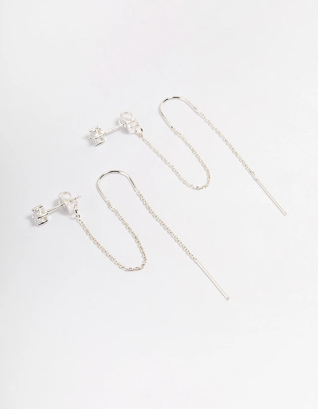 Silver Diamante Stud & Cupchain Earrings 3-Pack