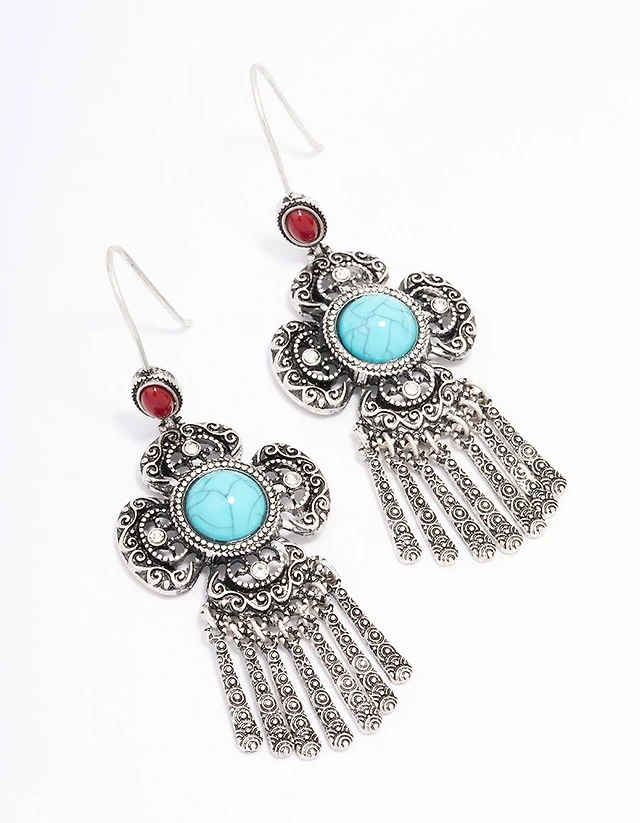 Oval London Blue Topaz and Diamond Accent Ribbon Loop Drop Earrings in 10K White Gold