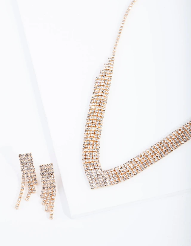 Gold Diamante Earrings Necklace Set