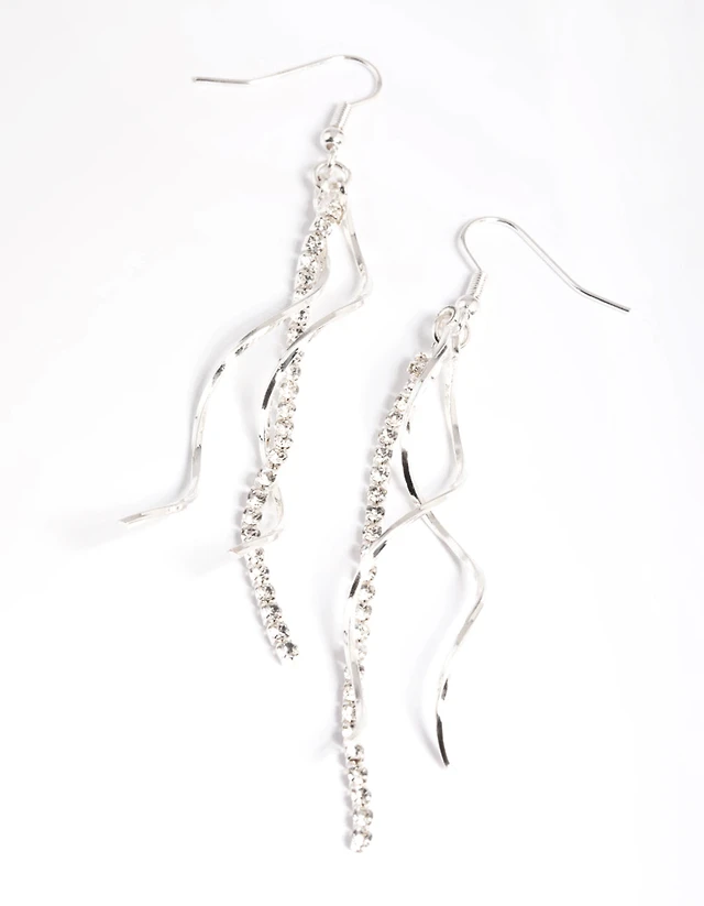 Sterling Silver Cubic Zirconia Dangle Curve Earrings Pack