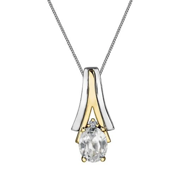 Freshwater Cultured Pearl Drop Pendant with Lab-Created White Sapphires and Diamond Accent in 10K Gold