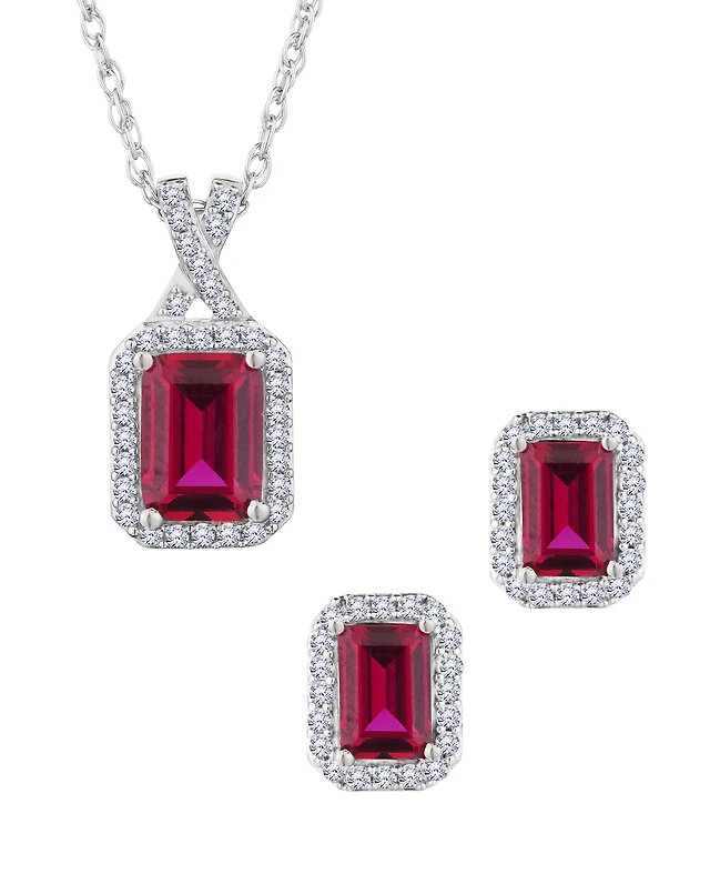 Created Ruby and White Sapphire Earring and Necklace Set, Silver.....................NOW