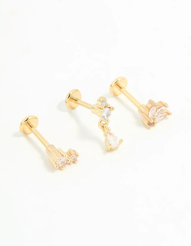 Surgical Steel Cubic Zirconia Dainty Flat Back Pack