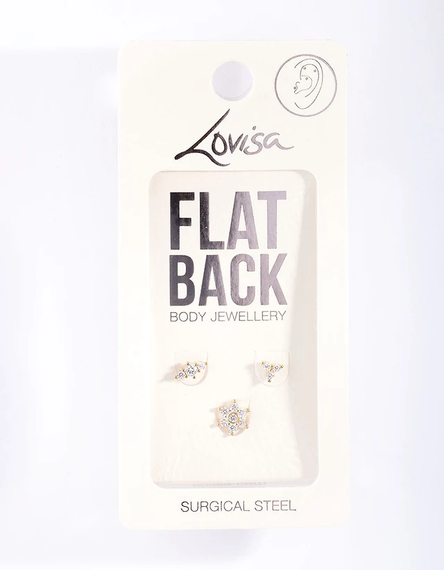 Gold Plated Titanium Cubic Zirconia Flat Back Pack