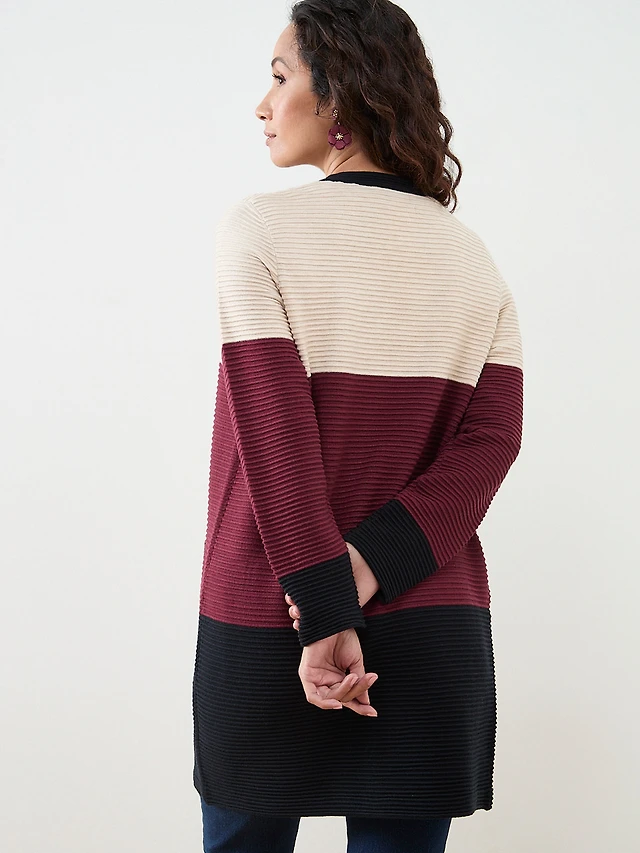 Flowy Draped-Front Textured Jacquard Print Cardigan with Long Sleeves by Perle