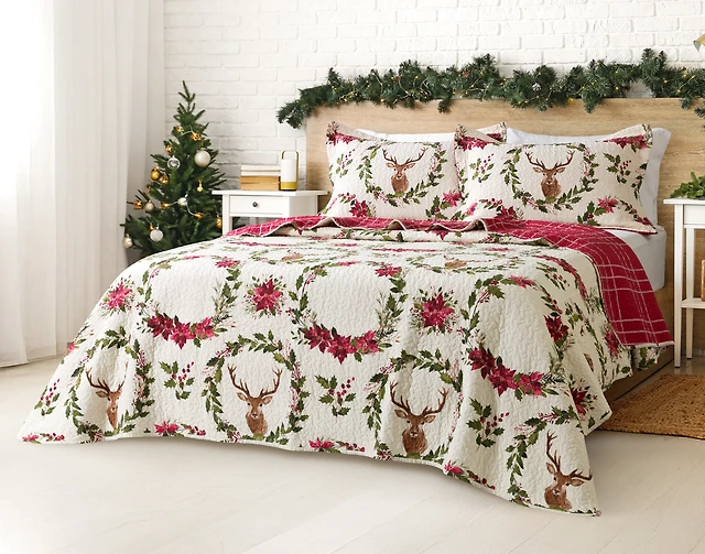 Merry Berry Cotton Quilt Set, Botanical, White, Twin