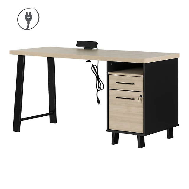 South Shore Furniture Kozack L-Shaped Computer Office Desk with Power Bar