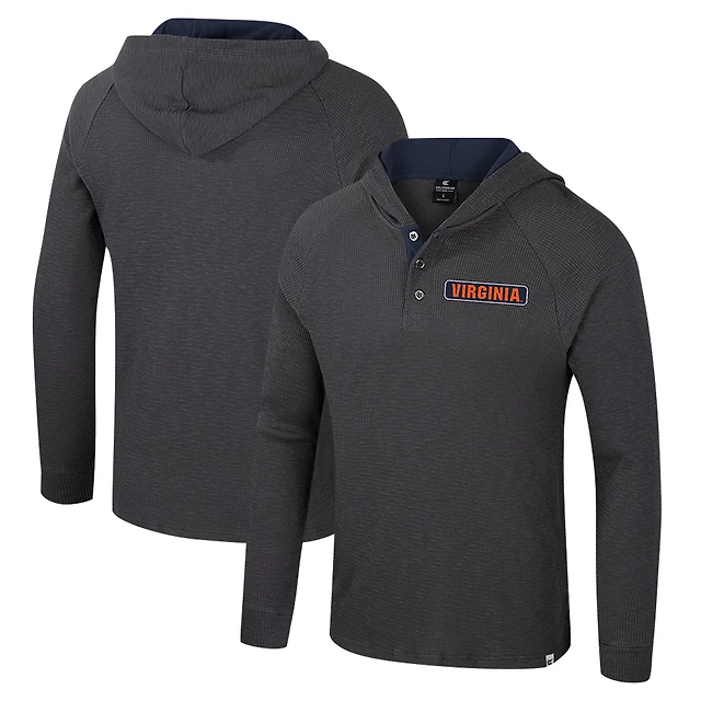 Men's Colosseum Charcoal Virginia Cavaliers Dujour Ralgan Long Sleeve Henley Hoodie T-Shirt