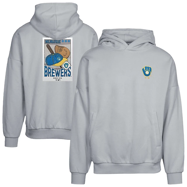 Men's Levelwear Gray Milwaukee Brewers Contact Pro Card Pullover Hoodie