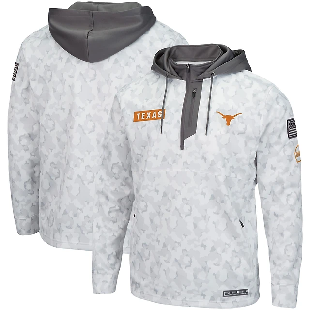 Men's Colosseum Arctic Camo Texas Longhorns OHT Military Appreciation Quarter-Zip Hoodie