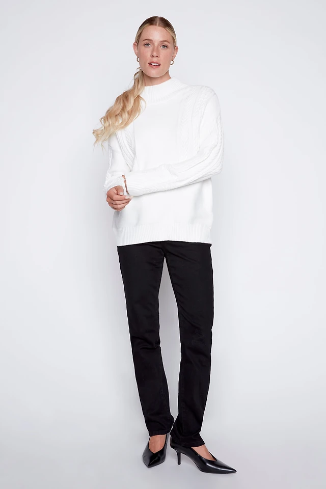 Braided Heart Mock Neck Sweater
