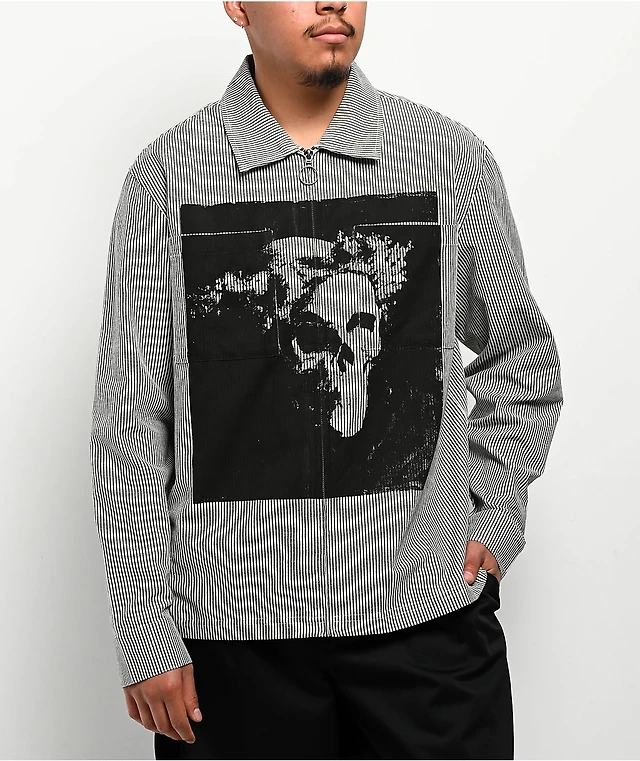 Welcome Dimension White & Blue Long Sleeve Zip Shirt