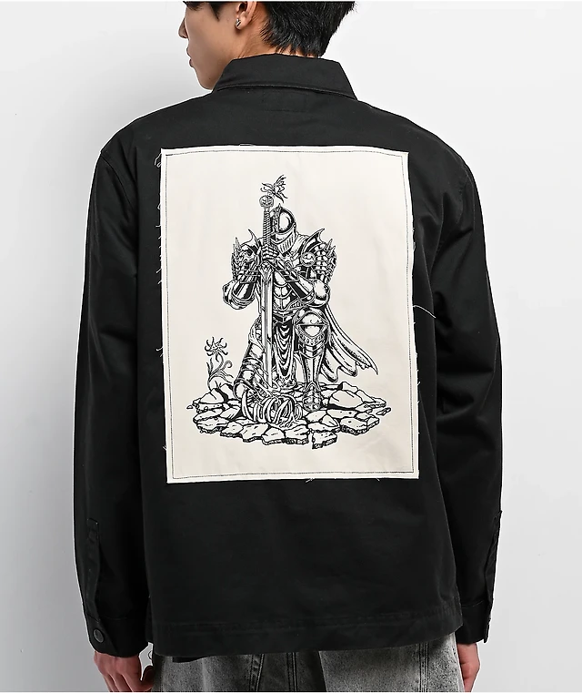 Welcome Sliver Black Waffle Knit Zip Long Sleeve Shirt