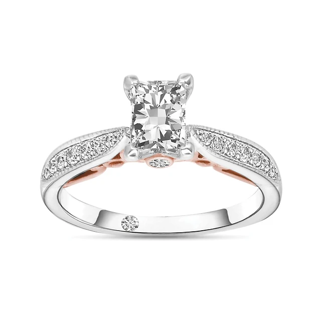 0.60 CT. T.W. Canadian Certified Diamond Double Cushion Frame Engagement Ring 14K White Gold (I/I2)