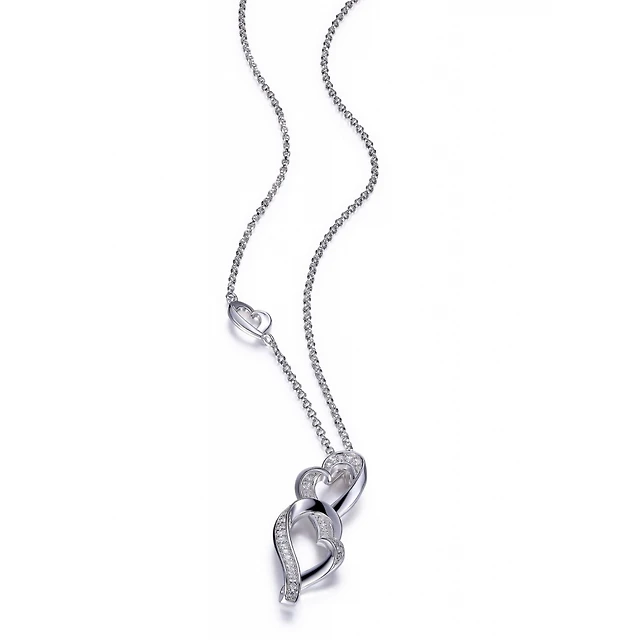 5.0mm Heart-Shaped Peridot and Diamond Accent Double Heart Lariat Necklace in Sterling Silver - 17.5"