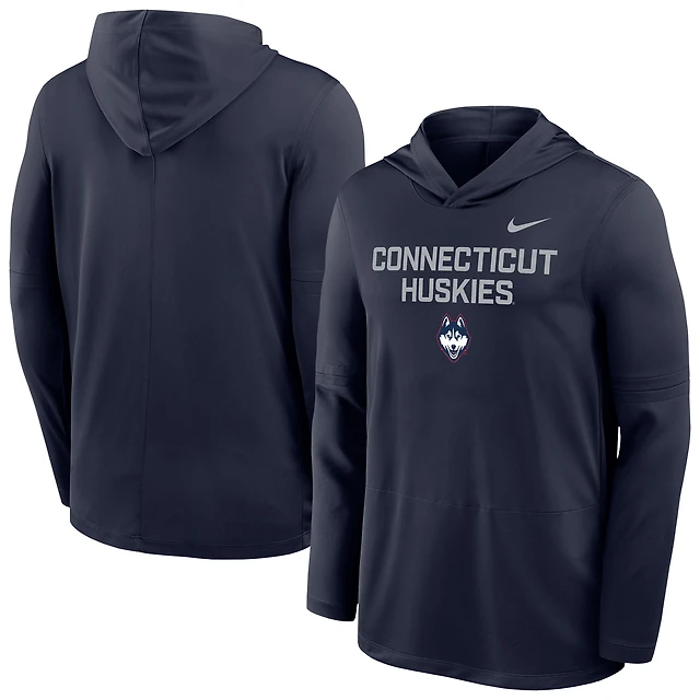 Men's Nike Navy UConn Huskies 2025 Sideline Dri-FIT Long Sleeve Hoodie T-Shirt