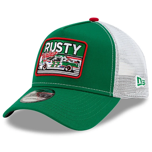 Men's New Era Green/White Rusty Wallace Legends 9FORTY A-Frame Adjustable Trucker Hat