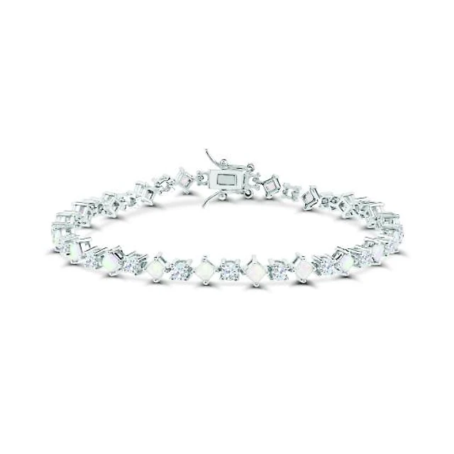 Cushion-Cut Lab-Created Opal and White Sapphire Vintage-Style "XO" Bracelet in Sterling Silver