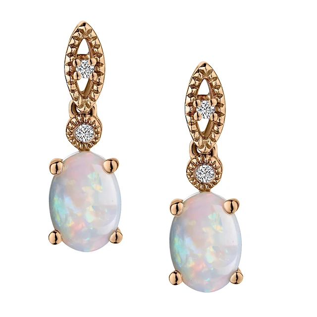 .75 Carat Oval Australian Opal and Diamond Earrings, 10kt Yellow Gold.......................NOW