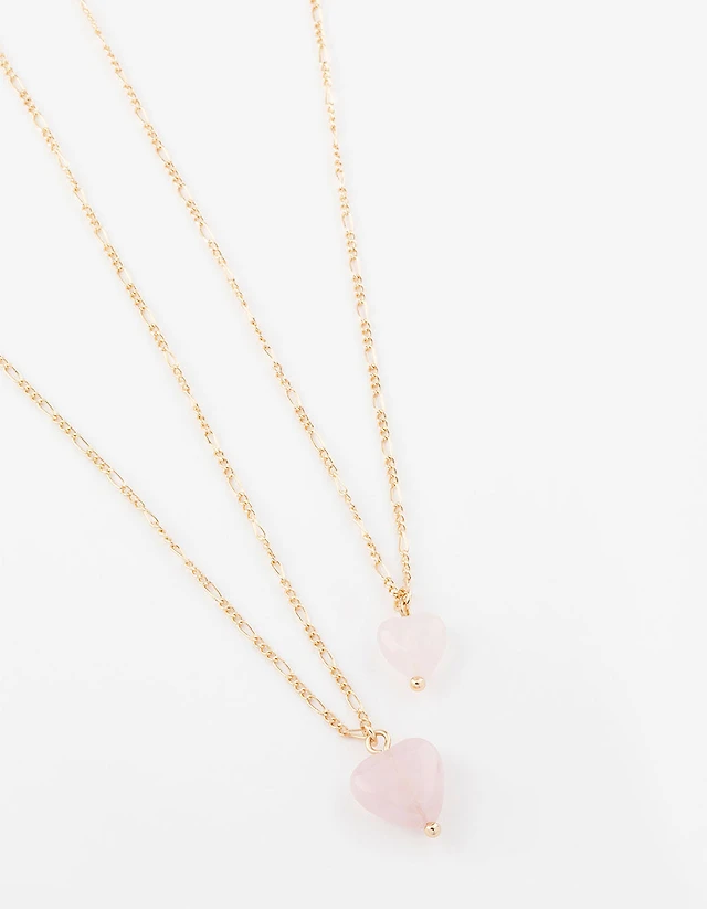 Rose Gold Semi-Precious Mini Heart Necklace Pack