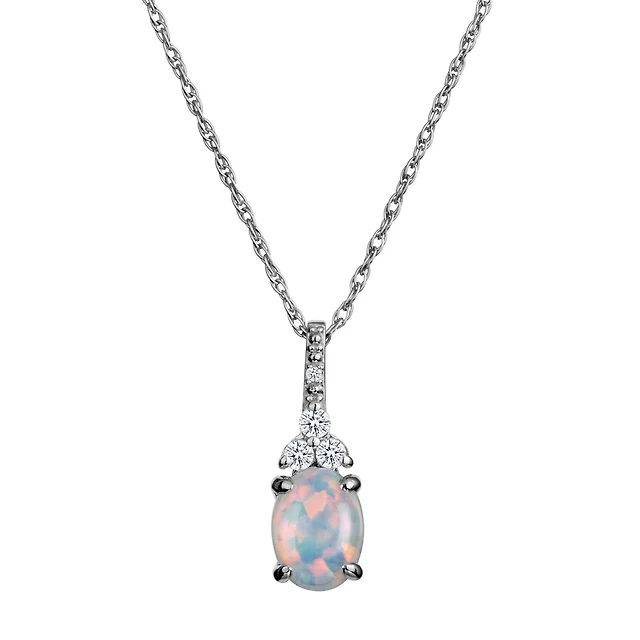 10K White & Yellow Gold Opal & 0.008CTW Diamond Pendant with Chain