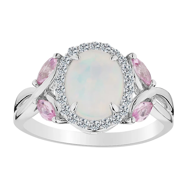 Created Opal, White & Pink Sapphire Ring, Silver..................NOW