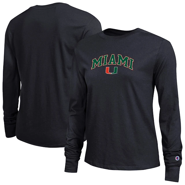 Women's Champion Black Miami Hurricanes Arch Over Logo Long Sleeve T-Shirt
