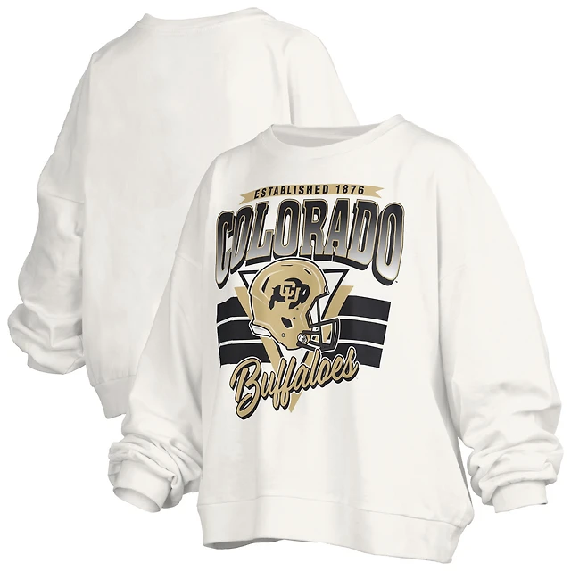 Women's Pressbox White Cal Bears Oversized Janice Retro Waist-Length Pullover Sweatshirt