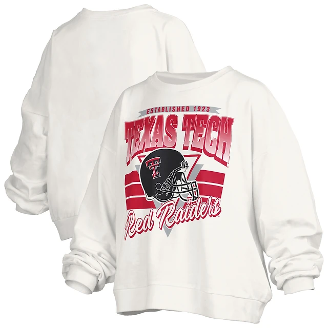 Women's Pressbox White Texas Tech Red Raiders Oversized Janice Retro Waist-Length Pullover Sweatshirt