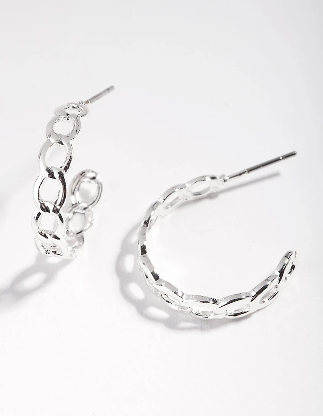 Paperclip Huggie Drop Earrings in Sterling Silver