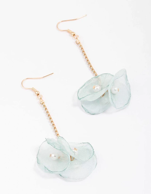 Green Gold Cup Chain Double Petal Drop Earrings