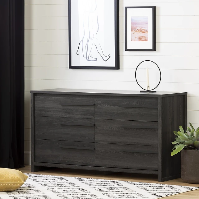Munich 6-Drawer Double Dresser Weathered Oak and Matte Black by South Shore Furniture