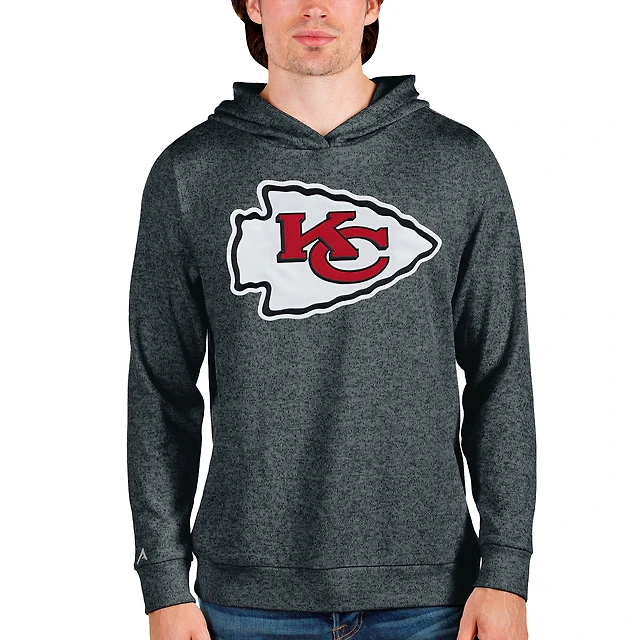 Men's Antigua Heathered Black Kansas City Chiefs Team Absolute Pullover Hoodie