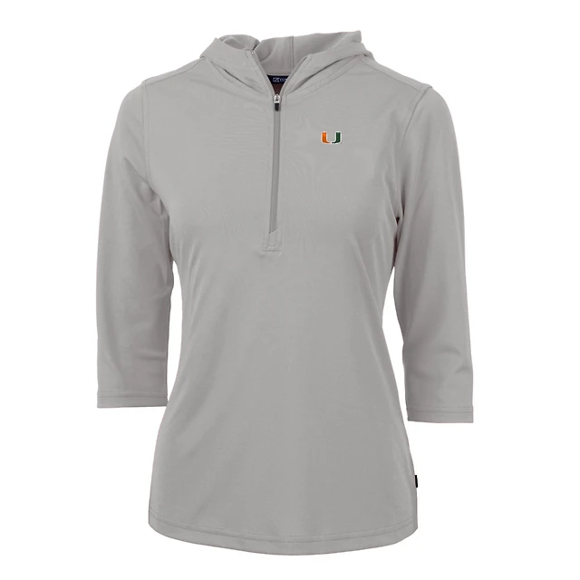 Women's Cutter & Buck Silver Florida Gulf Coast Eagles Virtue Eco Pique Half-Zip 3/4 Sleeve Pullover Hoodie