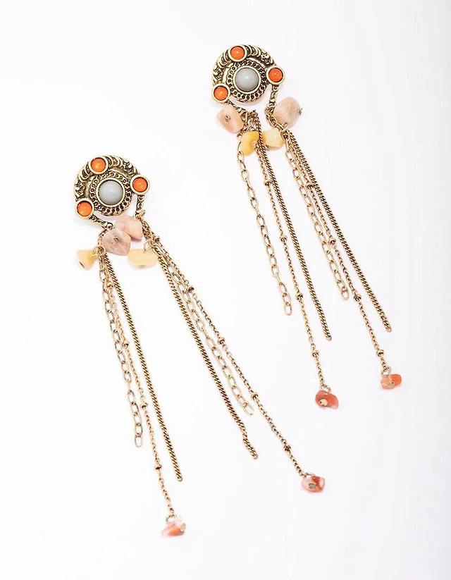 Antique Silver Turquoise Stone & Sun Drop Earrings