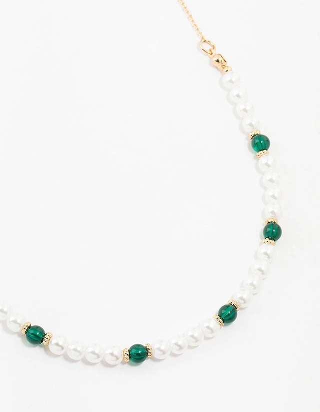 Waterproof Gold Plated Stainless Steel Green Jade Semi Precious Stone Pendant & Chain Layered Necklace