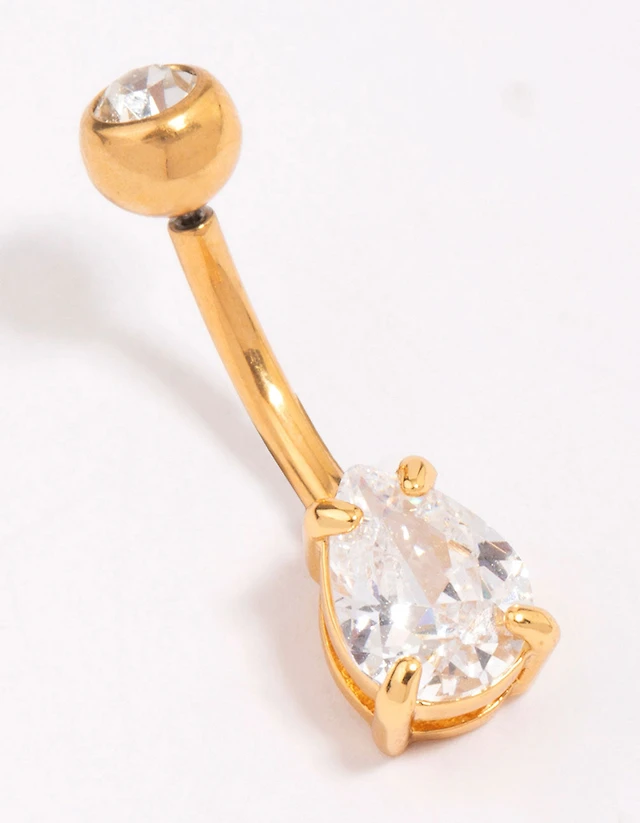 Gold Plated Titanium Cubic Zirconia Bezel Belly Piercing