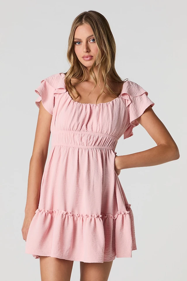 Minirobe à manches volantées avec encolure dégagée