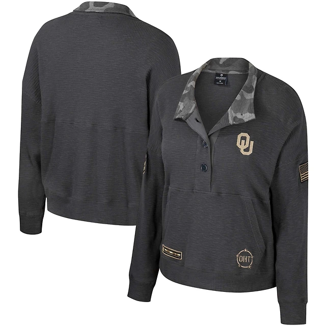 Women's Colosseum Heather Charcoal Oklahoma Sooners OHT Military Appreciation Payback Henley Thermal Sweatshirt