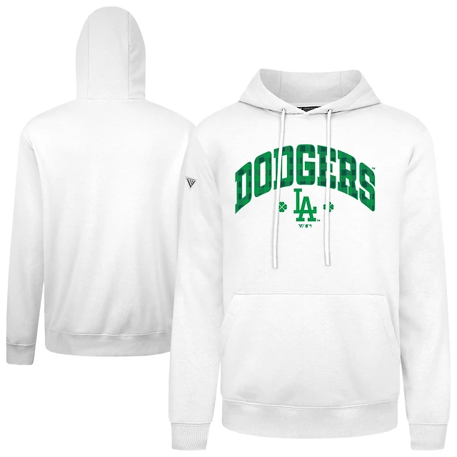 Women's Levelwear White Los Angeles Angels St. Patrick's Day Adorn Shamrock Pullover Hoodie