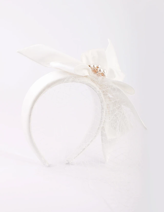 White Bow Pearl & Veil Headband