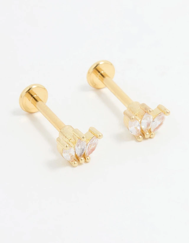 Gold Plated Surgical Steel Cubic Zirconia Marquise Flat Back Pair
