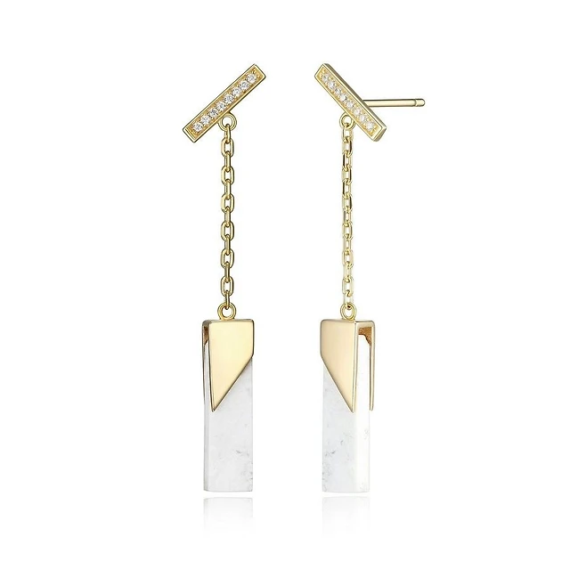 ELLE 18K Gold Plated Sterling Silver Genuine Howlite Bar Drop Earrings