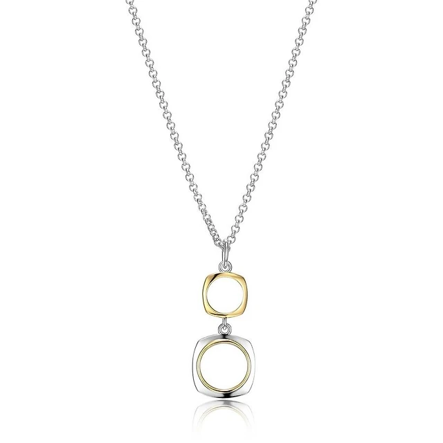 ELLE 18K Gold Plated Sterling Silver 2-Tone Double Square Drop Pendant Necklace
