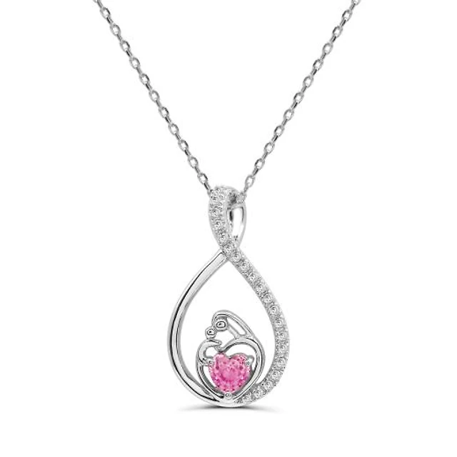 Sterling Silver Created Pink & White Sapphire Mother/Child Pendant