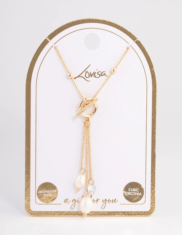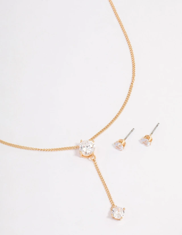 Rose Gold Cup Chain Diamante Y-Shape Necklace & Drop Earrings Jewellery Set