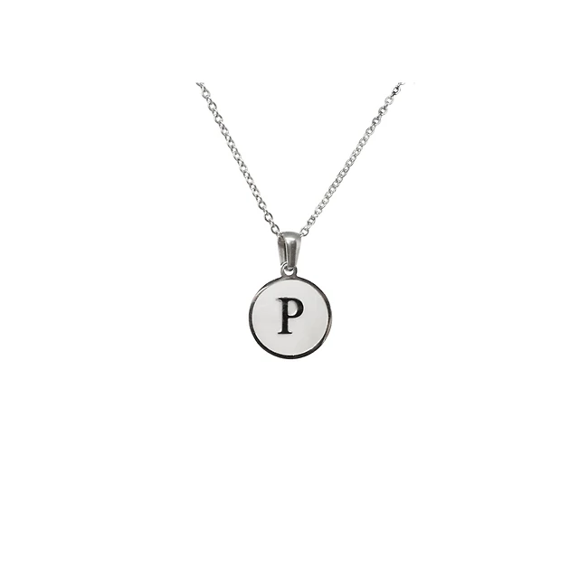 Luenzo Stainless Steel Initial Necklace "M" with Mother of Pearl Inlay