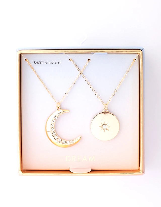 Gold Moon & Star Diamante Necklace Pack